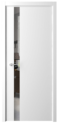 Дверь Геометрия-5 ширина 90 см Белый Эмаль Зеркало грей кромка В цвет полотна в Красноярске