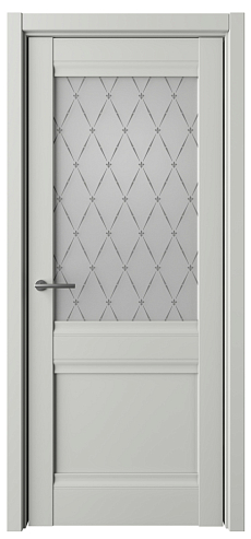 В остекленном варианте, в качестве остекления используется матовое стекло с художественным рисунком "Гранд". Идея рисунка соединить стильный ромб и благородный цветок «Лилия».